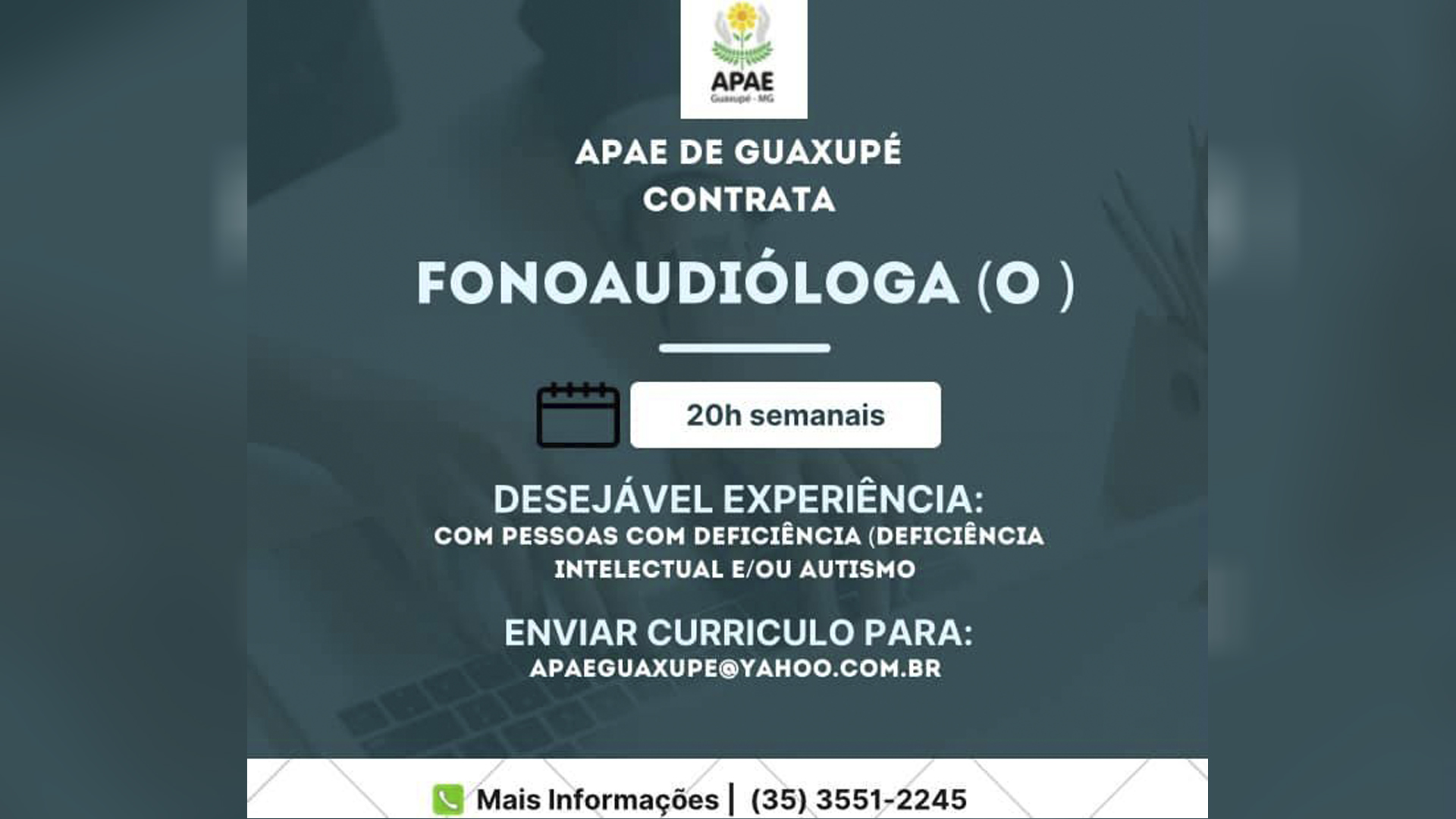 Emprego Apae de Guaxupé está com vaga para fonoaudiólogo (a) 14 de Junho de 202217 de Junho de 2022 Produção TV Sul 0 Comments Apae de Guaxupé está com vaga para fonoaudiólogo (a) About Post Author Produção TV Sul http://www.tvsul.tv.br See author's posts