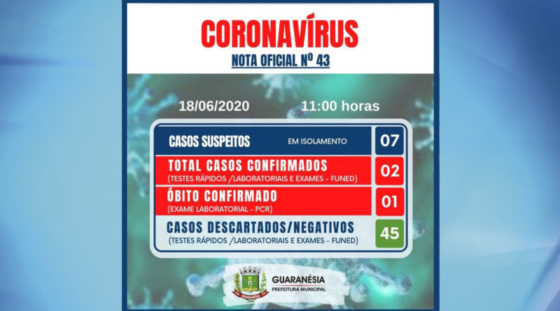 Em coletiva online a prefeitura de Guaranésia confirmou na manhã desta quinta-feira (18), a morte de um homem de 51 anos que deu entrada ao hospital no último dia 8 com sintomas de Covid-19. A morte aconteceu na segunda-feira (15), mas o resultado do exame chegou nesta quinta e confirmou a morte causada pelo novo Coronavírus. Além da morte, mais um caso da doença foi confirmado, confira mais informações.