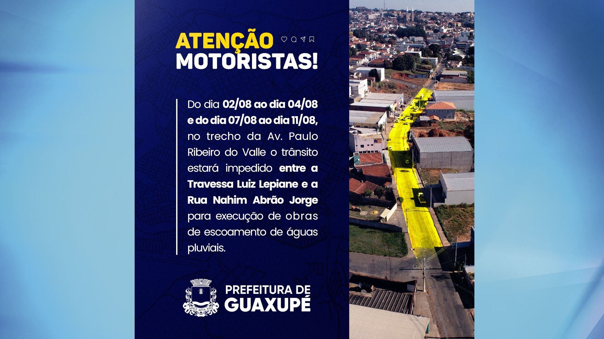 Cidades Interdição na Avenida Paulo Ribeiro do Valle 1 de Agosto de 20234 de Agosto de 2023 Produção TV Sul 0 Comments Interdição na Avenida Paulo Ribeiro do Valle About Post Author Produção TV Sul http://www.tvsul.tv.br See author's posts