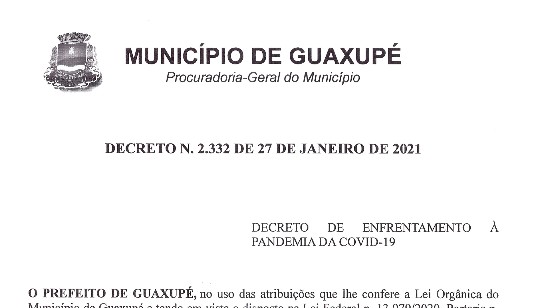 Prefeitura de Guaxupé divulga novo decreto que permite reabertura de comércio não essencial