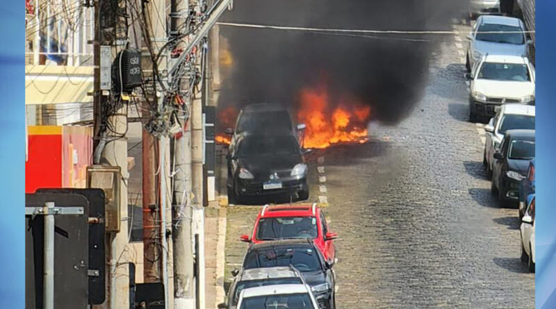 Veículo pega fogo no centro de Guaxupé
