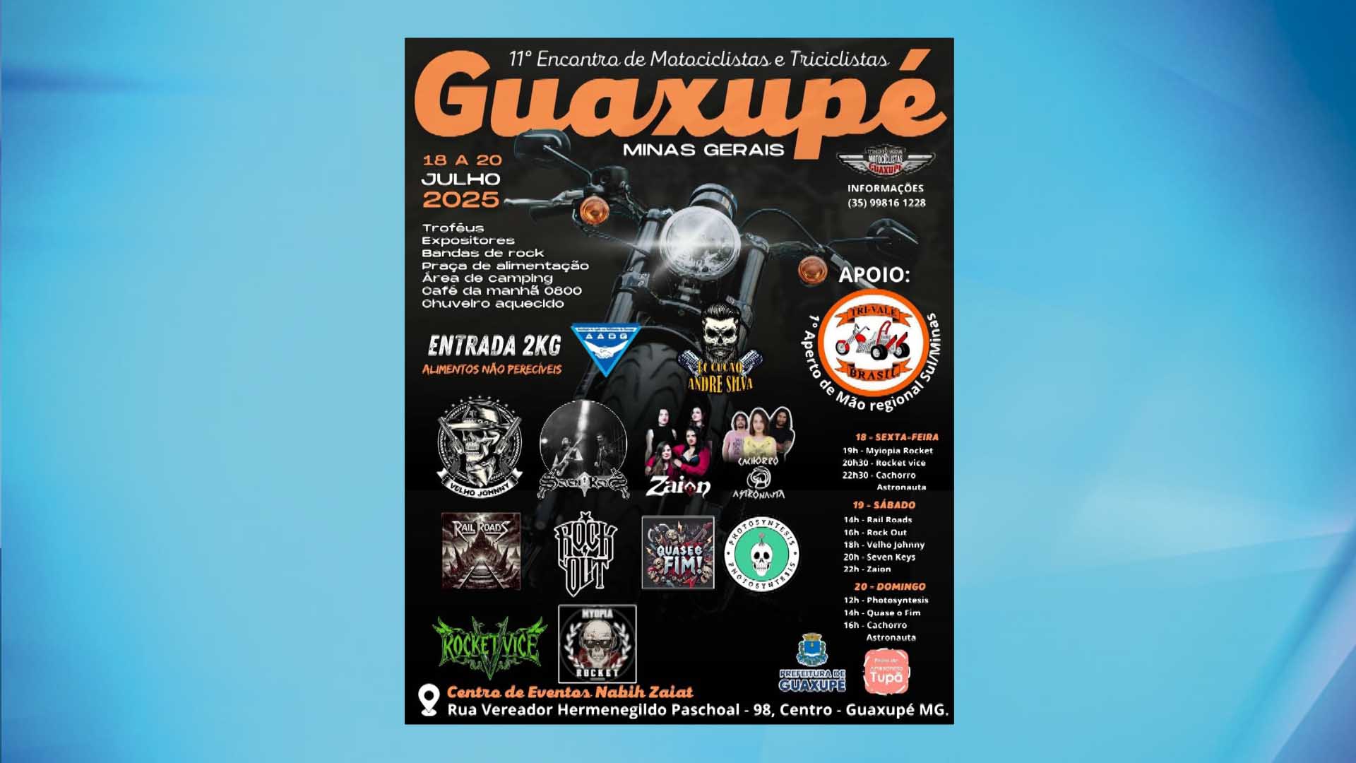 Cultura Vem aí o 11º Encontro Nacional de Motociclistas e Triciclistas de Guaxupé 26 de Junho de 202530 de Junho de 2025 Produção TV Sul 0 Comments Vem aí o 11º Encontro Nacional de Motociclistas e Triciclistas de Guaxupé About Post Author Produção TV Sul http://www.tvsul.tv.br See author's posts