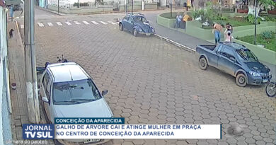 Galho de árvore cai em praça e fere mulher no centro de Conceição da Aparecida
