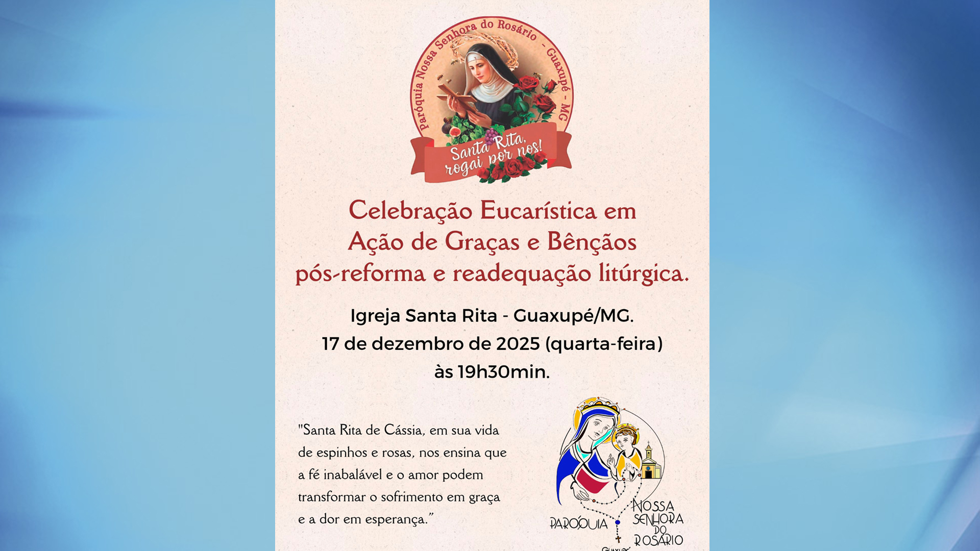 16 de Dezembro de 2025 Produção TV Sul 0 Comments Celebração marca reforma e readequação litúrgica da Igreja Santa Rita