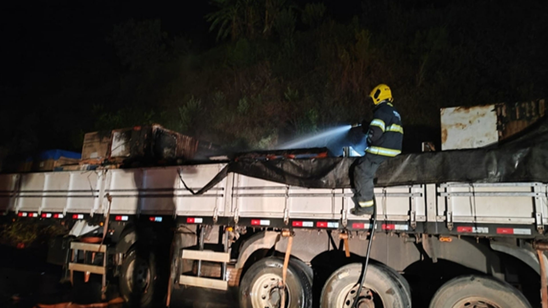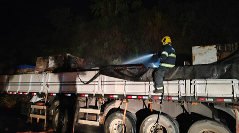 Falha no sistema de freios provoca incêndio em carreta na BR-491, em Muzambinho